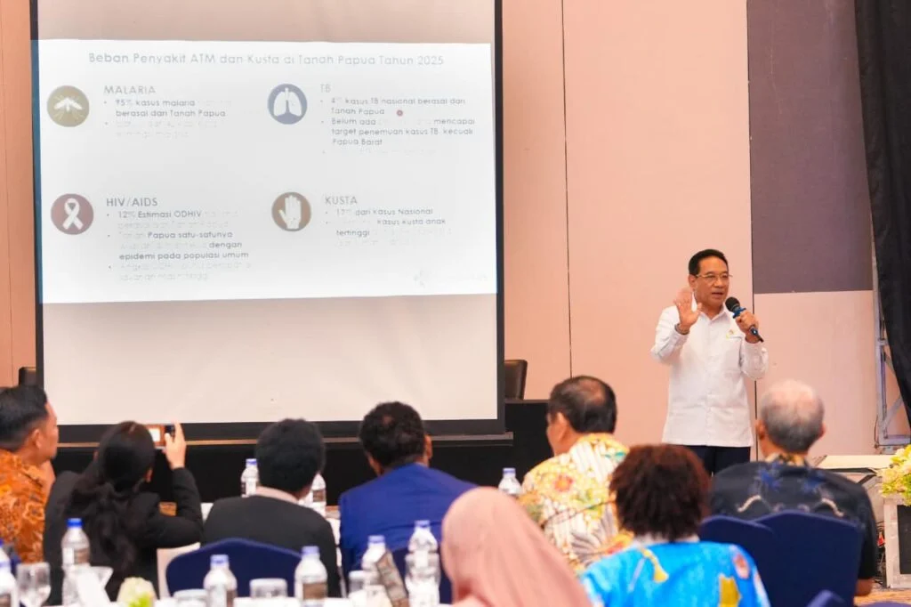 JAYAPURA, admediapapua.co.id – Gubernur Papua, Matius D. Fakhiri, menegaskan pentingnya sinergi antara pemerintah pusat dan daerah dalam percepatan eliminasi penyakit menular seperti AIDS, tuberkulosis (TB), malaria, dan kusta di Tanah Papua.