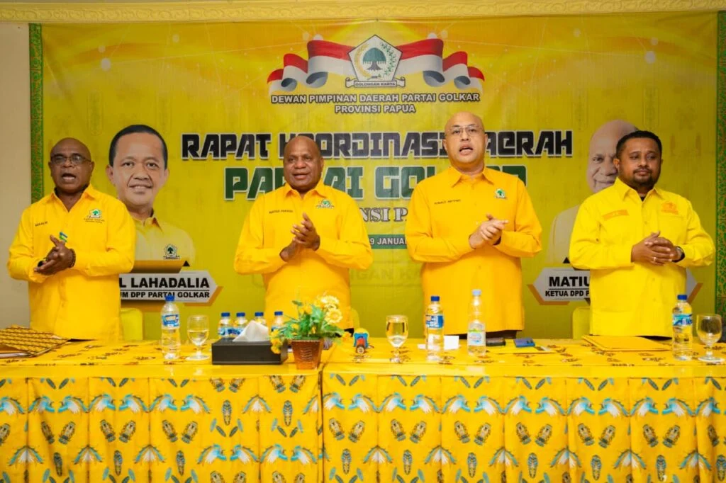Jayapura — Ketua DPD I Partai Golkar Papua, Matius D. Fakhiri, membuka Rapat Koordinasi Daerah (Rakorda) Partai Golkar Papua yang digelar di Aula Kantor DPD Golkar Papua, Jalan Percetakan, Kota Jayapura, Kamis (29/1/2026).