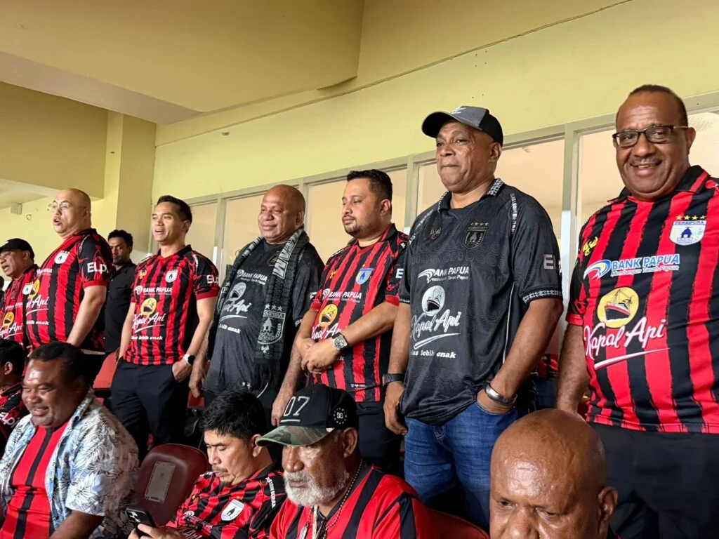 Gubernur Papua Matius Derek Fakhiri hadir langsung di stadion memberikan dukungan didamping Ketum Kadin Pusat Anindya Bakri, Sekda Papua Christian Sohilait, Asisten I Sekda Papua Yohanes Walilo serta sejumlah kepala OPD.[red]
